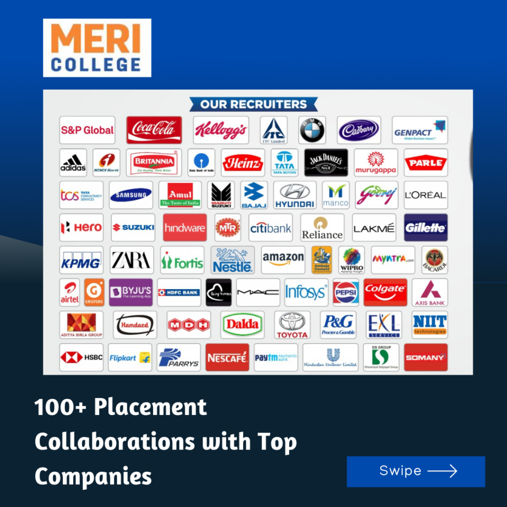 MERI College has established robust relationships with leading companies and organizations across various sectors. These connections facilitate excellent internship and placement opportunities for MBA students, giving them a head start in their careers.