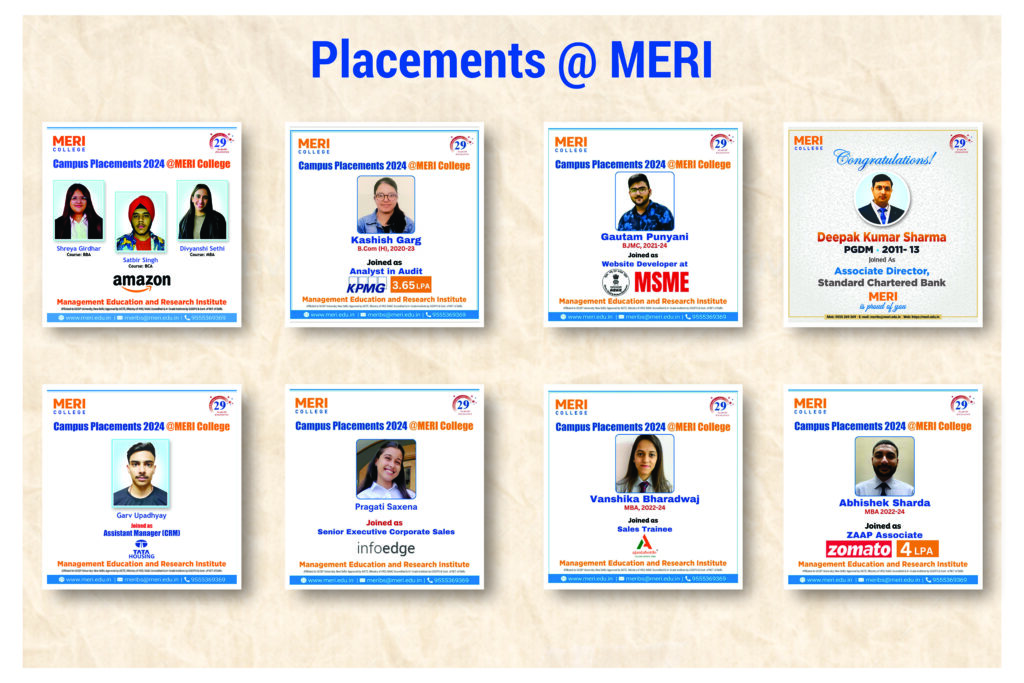 The dedicated placement cell at MERI College works tirelessly to ensure that every MBA graduate finds suitable employment. From resume building workshops to mock interviews and campus recruitment drives, the college provides extensive support to help students secure their dream jobs.