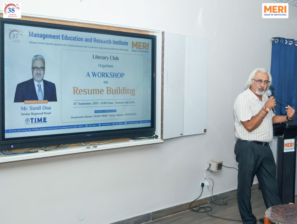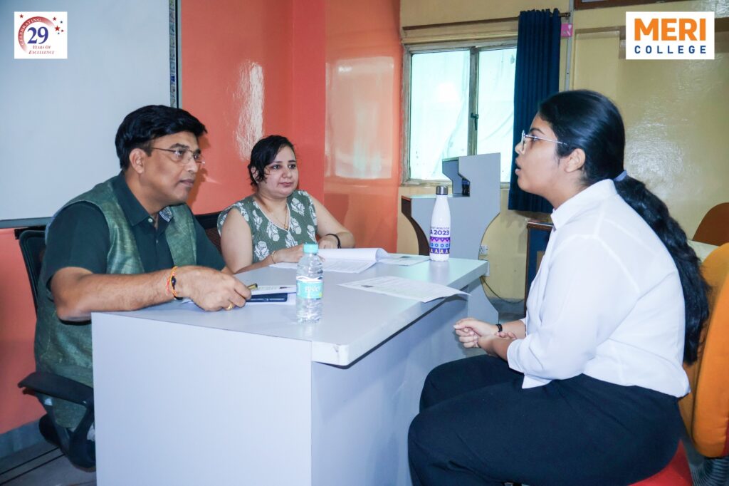 Placement Activities & Notices MERI – Placement Notices Click Here to View Notices Activity Glimpses Group Discussion Mock Interviews Session on Industry Expectations Training on IOS Programming and Data Analysis Workshop on Resume Building Session on Career Choices Corporate Training Session Expert Talk on Techniques of TV Anchoring & Reporting Industry Academia Interaction for Employability Listening to Learning Skill Workshop Navigating Career Opportunities for Mastering CAT Seminar on Role of Banking in Shaping Career