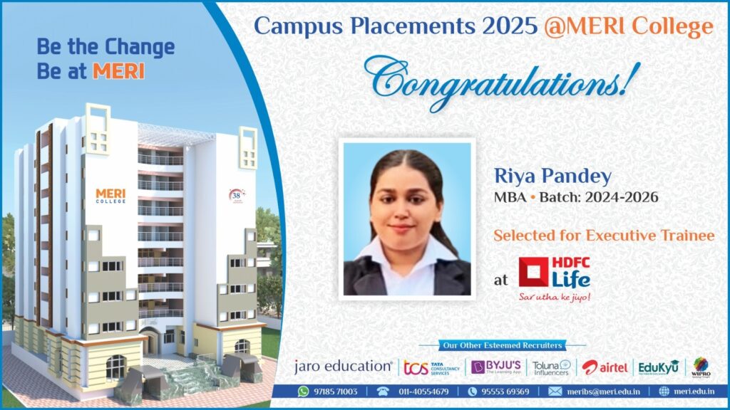 The Programme provides in-depth understanding of key functional areas of Business and nurtures overall personality and Managerial excellence. Operating on fundamentals that built the best Leaders in the Industry, the program focuses on integrated development of the individual and collective spirit, to enable the students to effectively adapting to the realities of the corporate world and proactively responding to the challenges arising in the globally changing environment MERI is aimed at all-round development of working professionals so that they can step into the role of a manager.